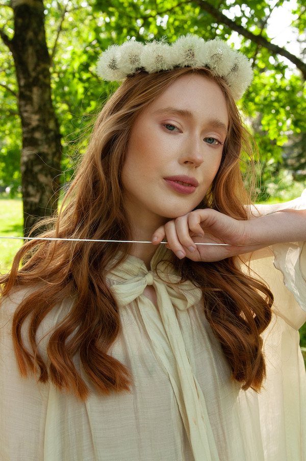 natural golden glowing makeup in cleangirlaesthetic and blue outfit